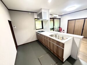 キッチン本体とレンジフードの交換、内装工事(クロス・クッションフロア交換)を行いました。